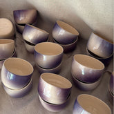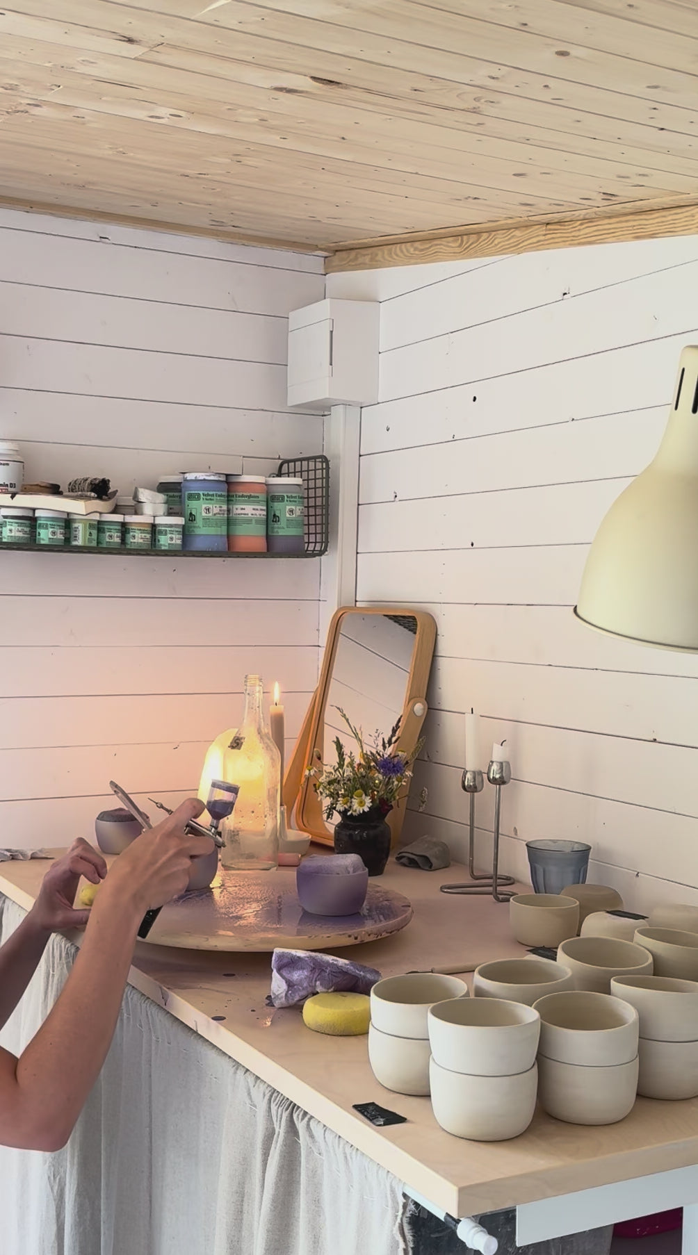 Povedali sme jej, že túžime po šálkach, ktoré budú zhmotňovať našu esenciu hĺbky, tepla a jemnosti. Rebecca si túto víziu vzala k srdcu. Poctivo na nich pracovala celé leto, skúšala, ladila odtiene, tvary aj glazúry.